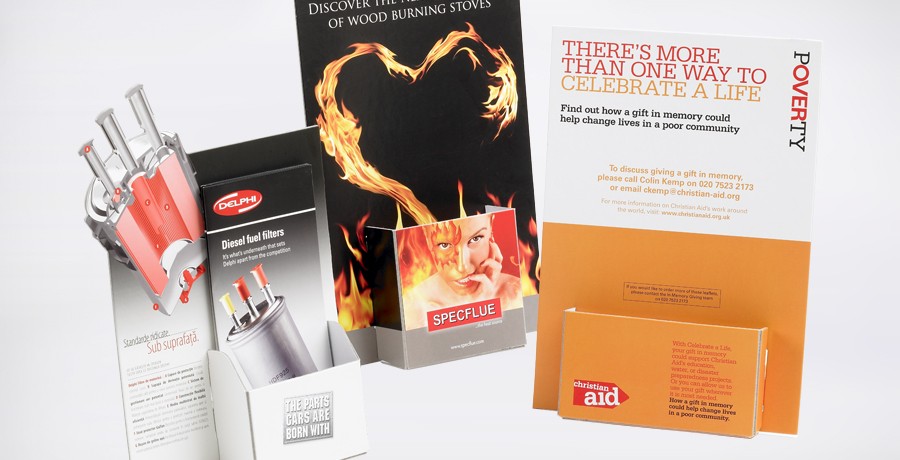 Inside there’s the mission statement and a testimonial to their great delivery – on time, on budget – space for a bar of Montezuma’s chocolate, a Z-card showing past projects, and a clear call to action.