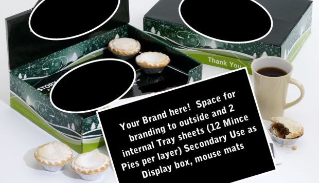 Big on taste, small on budget… The Mince Pie Office Pack (24 tasty, freshly-baked Mince pies, individually wrapped in a display box, with your company branding on, ready for delivery) Win more…Great results promised!